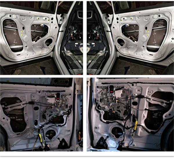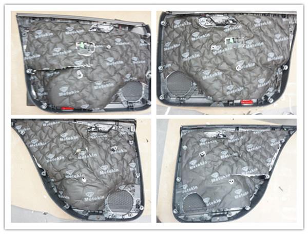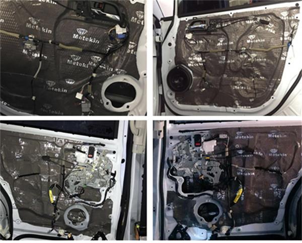 车门双层隔音处理完毕,美特静减震材料采用铝基板及高纯度丁基材料减震复合材料制成,环保高效、与钣金贴合度好,防水阻燃,能长时间保持良好的隔音减震效果。