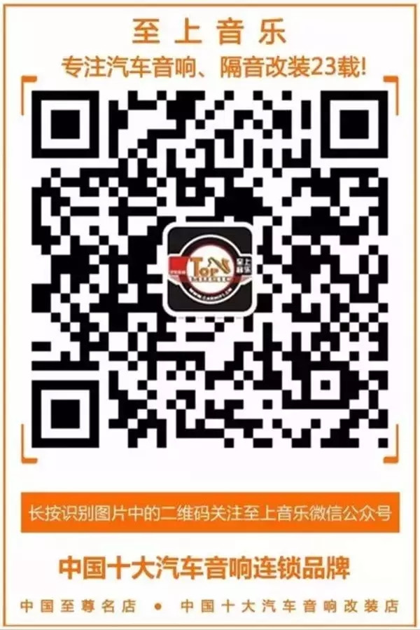 英国正弦波两分频搭配同轴喇叭,简单的前后声场无损替换,音乐的品质上升的却不止一个档次,不仅是因为器材的搭配好,还有很重要的一点,安装调试到位。【更多汽车音响升级改装、汽车隔音降噪,欢迎扫一扫下方二维码,关注至上音乐公众号】