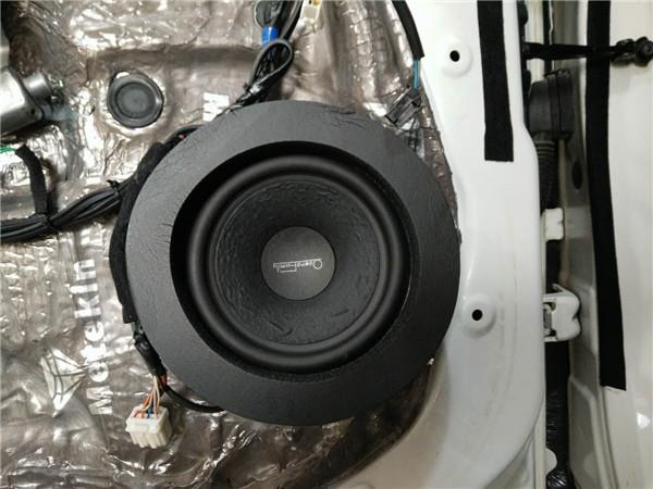 前声场安装歌剧世家VS365三分频,低频密度感好,中频清晰,高频响亮,整个前声场取得了的非常好的平衡,真实耐听,且中音和高音倒模安装于A柱,使得声场扩大,辽阔又嘹亮。