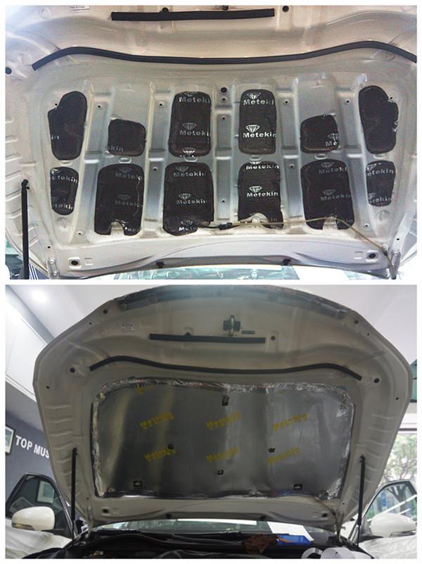 引擎盖隔音:首先进行减震升级,降低共振,其次使用专业的隔热覆膜进行吸音和隔热,从根源上解决了问题,从此再也不用担心引擎盖漆面和车体出现色差了。
