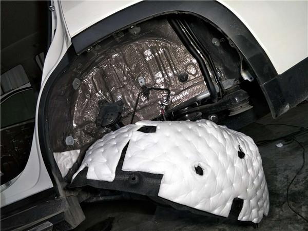 叶子板隔音:叶子板主要是针对胎噪,先用减震板降低钣金震动噪音,再使用吸音棉做吸音处理。专业的隔音施工有效减少轮胎与地面摩擦的噪音传入驾驶舱。