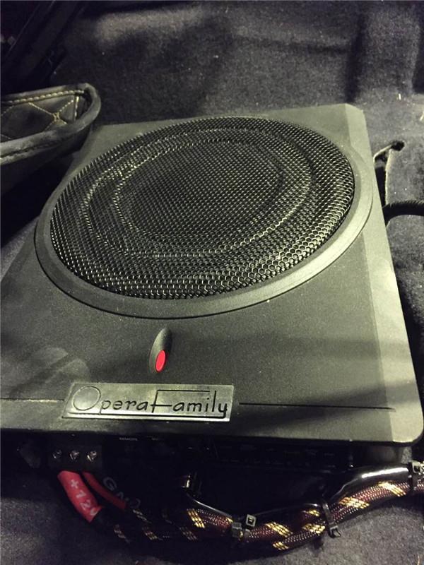 在逍客的前排座椅底下放置了低音,是歌剧世家的U3超薄电磁炮,相比于普通的低音炮,这款超薄设计的低音除了空间上占尽优势外,在声音的表现上也有大动态而不失真,并且易于安装布置。