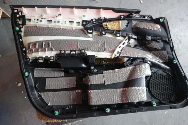 在门饰板粘贴条形止震板,有效减少门饰板的振动。