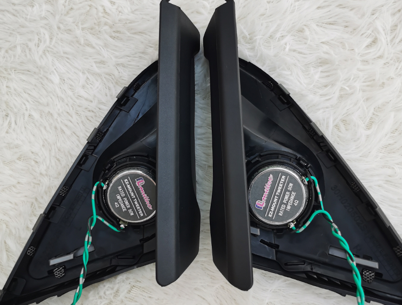 迈博特宝马三分频套装高音单元安装在三角位,中音和中低音喇叭都是原位换装。