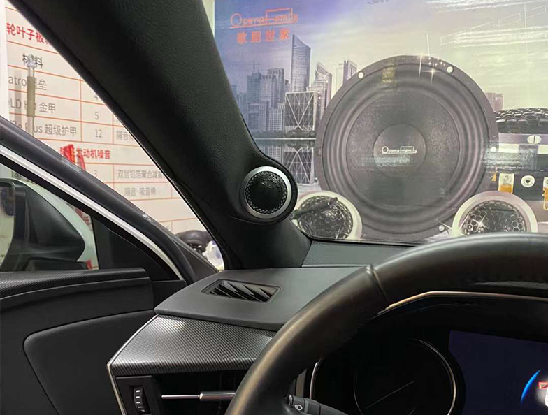 前声场安装一套歌剧世家VS53三分频套装喇叭,真实还原声音细节,带来美妙的聆听体验。高音倒模安装在A柱上,中音原位安装,中低音单元安装在车门原位,更有利于获得开阔的声场和良好的听音体验。