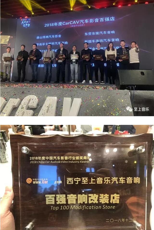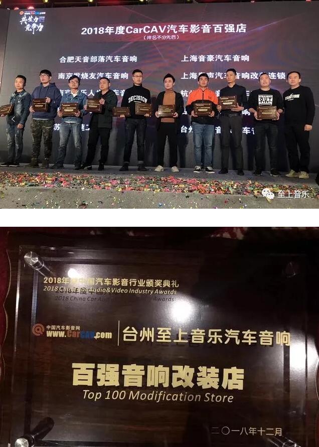 接下来颁发的百强音响改装店,至上音乐团队一共5个加盟店斩获了这项荣誉,分别是: