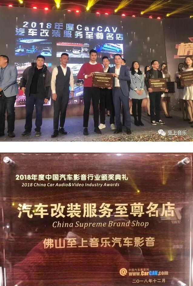至上音乐佛山旗舰总店,收获了门店里的最高殊荣--汽车改装服务至尊名店。